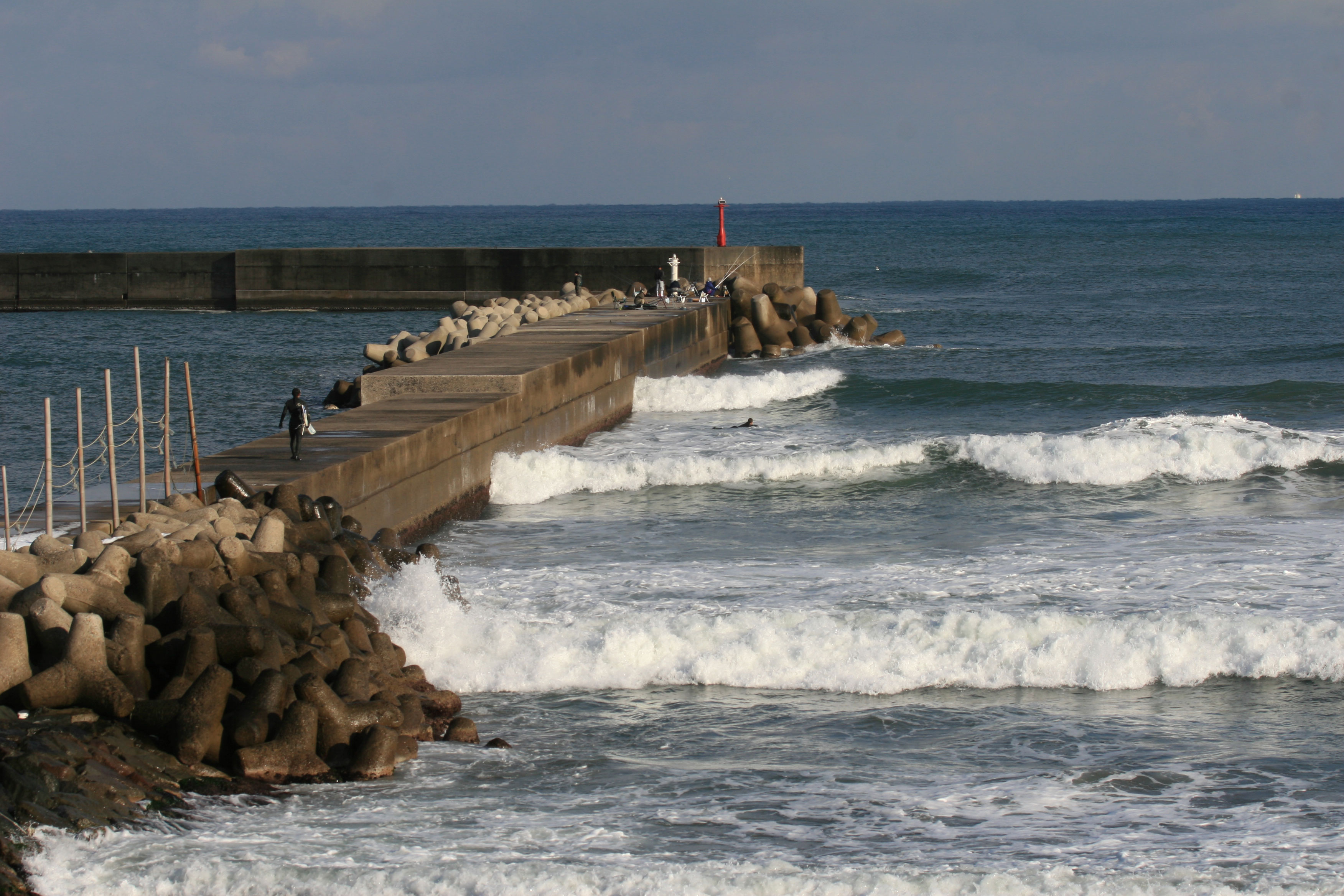コメント: ゲットにハマりたくないサーファーが堤防を使ってアウトへ。